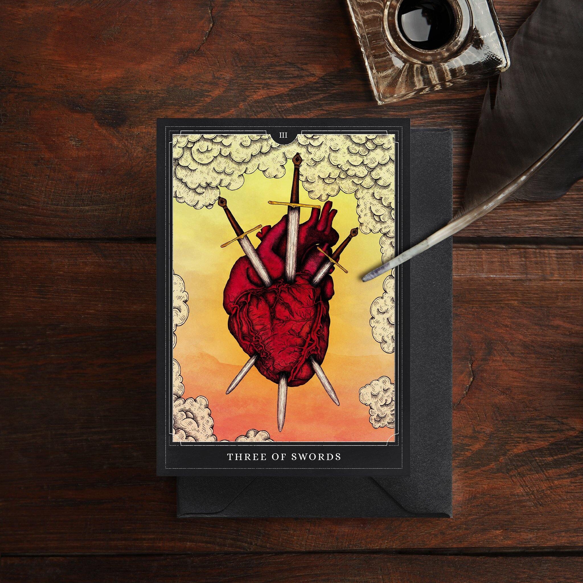 The Three Of Swords Tarot Witchy Greeting Card Anatomical Etsy